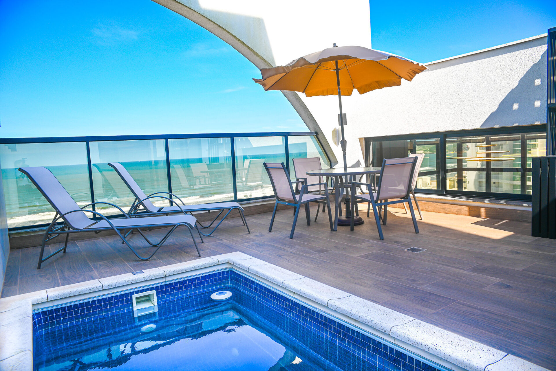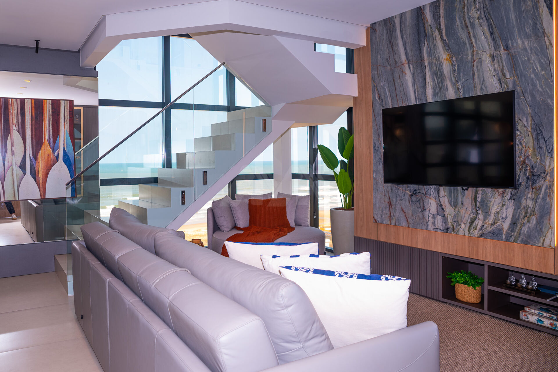 Este espaçoso apartamento cobertura duplex totalmente mobiliado e decorado, possui 3 dormitórios, sendo 2 suítes, e 4 banheiros, distribuídos em uma área privativa de 355m².