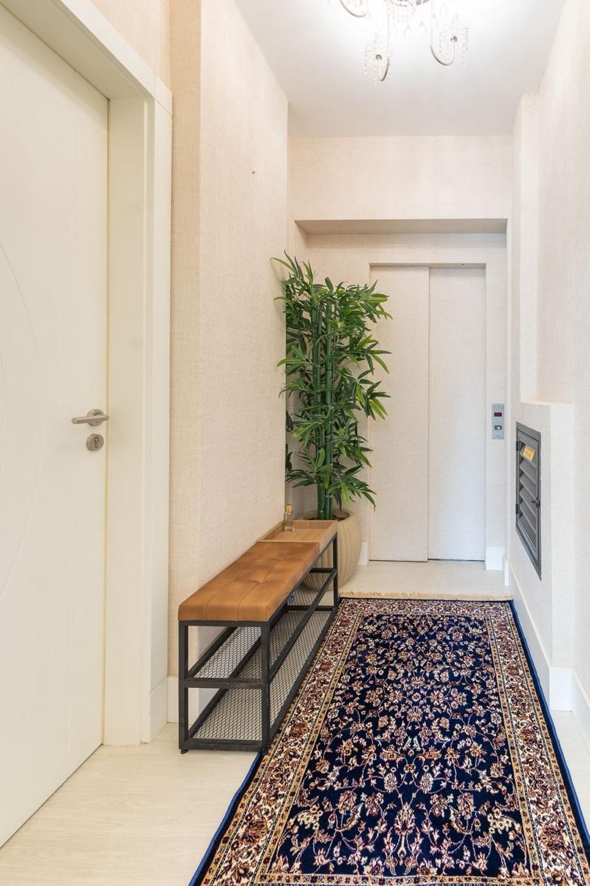 O apartamento é totalmente climatizado, mobiliado e decorado com hall de entrada privativo e com duas vagas de garagem com carregador.