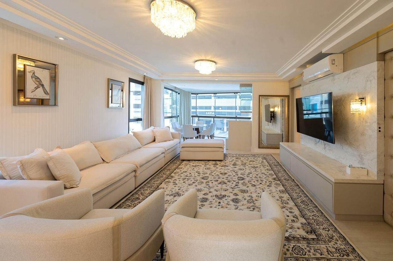 O apartamento conta com 172,24 m² de área privativa e possui uma planta funcional, que proporciona uma distribuição inteligente dos ambientes: são três suítes, sendo uma master com closet e sacada, cozinha recentemente reformada e equipada com eletrodomésticos de última geração e integrada à sala de jantar; sala de estar; sala de TV; sacada espaçosa com churrasqueira; lavabo e uma área de serviço completa incluindo um banheiro de serviço.